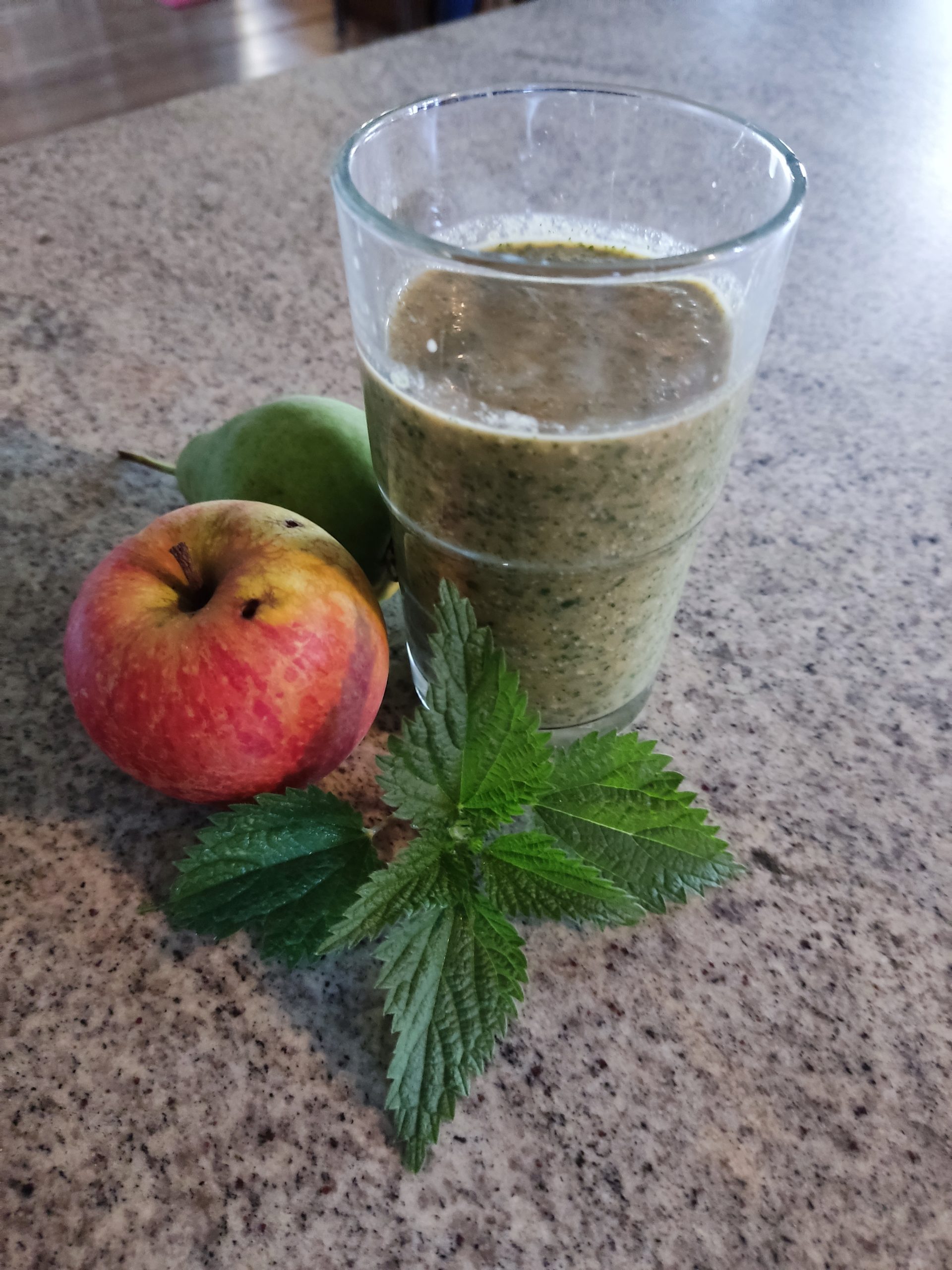 Der Herbst hat viel zu bieten. Es gibt viel Obst und auch die Brennessel ist wieder schön gewachsen. Der Brennessel-Apfel-Birnen-Smoothie ist super lecker und gesund.